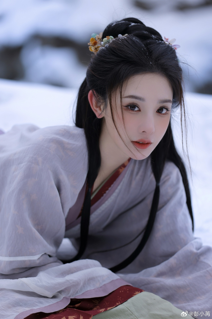 Theo Sohu, ngày 7/1, phía Bành Tiểu Nhiễm tung bộ ảnh mới, lập tức vào top những chủ đề hot nhất trên mạng xã hội Weibo. Người đẹp mặc bộ váy tím, cầm ô trắng, một mình lang thang giữa trời đông tuyết rơi phủ trắng đường. Nhiều người hâm mộ đang rất tò mò tự hỏi đây liệu có phải một tạo hình trong dự án mới của mỹ nhân cổ trang đình đám.